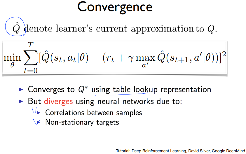 앞에서는 큐네트워크를 이용해 CartPole문제를 풀려고 했지만 잘 풀리지 않는 것을 보았다. 그건 강화학습+신경망의 문제 때문인데 그 문제는 각 샘플들간의 상관관계와 target이 유동적이기 때문이다. 이 두개가 정말 큰 문제이다. 근데 DQN을 만든 딥마인드는 이 문제들을 풀어냈고 이 것들을 어떻게 풀어냈는지 보자.